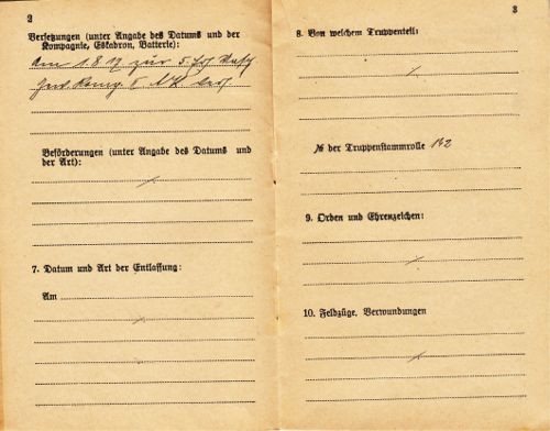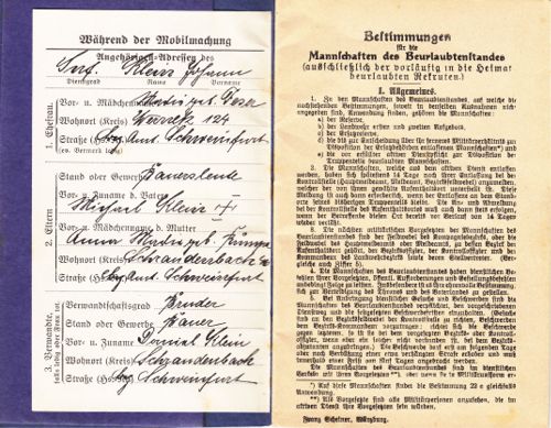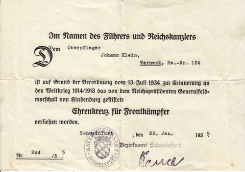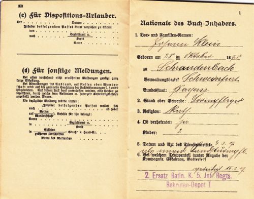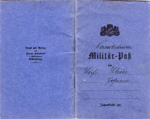 Militärpass und Verleihung Ehrenkreuz von Johann Klein