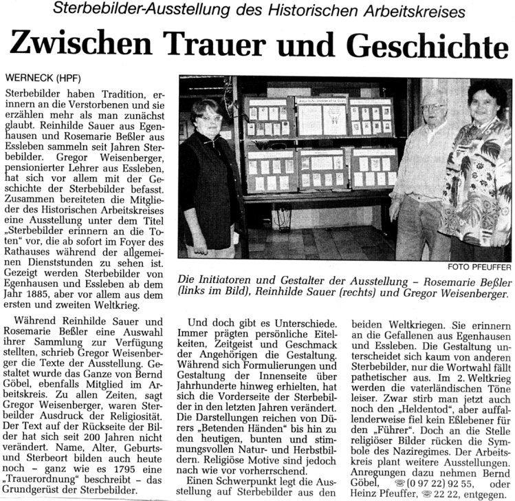 Einen besonderen Aspekt der Ausstellung stellen Sterbebilder aus dem 1. und dem 2. Weltkrieg dar.