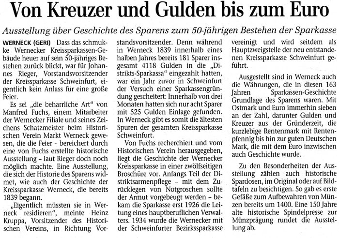 Ausstellung in Zusammenarbeit von Kreissparkasse Schweinfurt und Historischem Verein Markt Werneck Oktober 2002