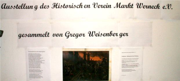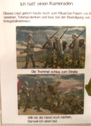 Die, „Postkarten-Dichtung" im Ersten Weltkrieg hat Georg Weisenberger die Ausstellung betitelt. Hier geht es nicht um Kriegsverherrlichung, im Gegenteil, betont Weisenberger. „Die Ausstellung will auf die Verlogenheit der Postkarten-Propaganda hinweisen." Und so hat der Eßlebener Heimtforscher die oft kitischig grellbunten Postkarten aus der damaligen Zeit mit kritischen, teils bissigen Kommentaren versehen. Zum kritischen Nachdenken soll die kleine Ausstellung des Historischen Vereins anregen. Soll den Zeitgeist widerspiegeln, soll erinnern. |