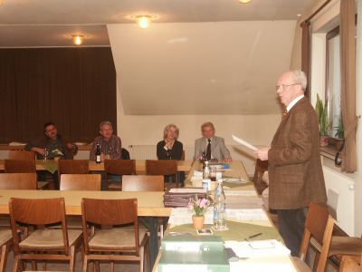 Wir wollten der Tagespresse eigentlich die Chance geben, schneller zu sein, als wir. Deshalb etwas verspätet zu den bereits veröffentlichten Fotos von Bernd Göbel ein, wenn auch stark gekürzter, Bericht über die Jahreshauptversammlung mit Neuwahl. Der Bericht des Schatzmeisters wurde verlesen und gab zu keinen Erinnerungen Anlass; Kassenprüfer: Alles im grünen Bereich! Die Mitgliederversammlung am Mittwoch, 20. April 2005 hatte ja auch die Aufgabe, nach 2 Jahren der Satzung entsprechend den gesamten Vorstand des Historischen Vereins Markt Werneck e.V., neu zu wählen. Das Ergebnis hat im eigentlichen Vorstand keine personellen Veränderungen gebracht, bei den Beisitzern haben sich zwei Veränderungen ergeben. Die Namen waren am nächsten Tag bereits auf unserer Seite veröffentlicht und sind dort einzusehen. Stichpunktartig wollen wir über die im letzten Jahr erfolgten Aktionen und Begebenheiten berichten: