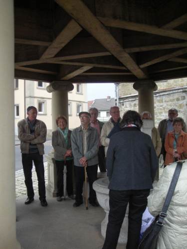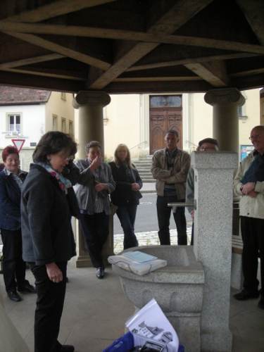 Buchpräsent für die Führung, die wegen des schlechten Wetters nur im
