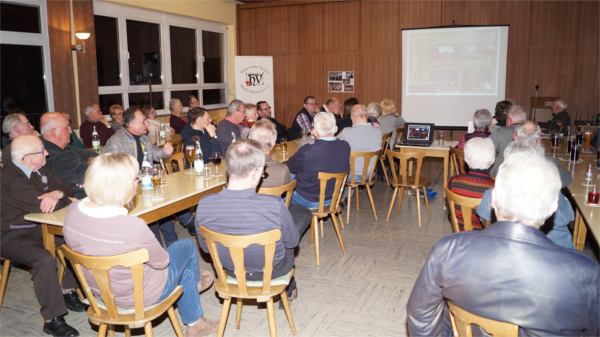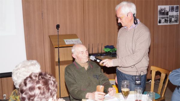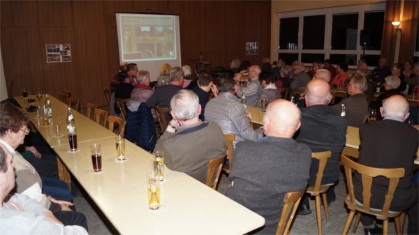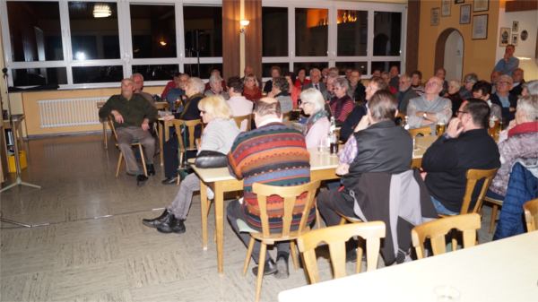 | Zu der von unserem Mitglied Hermann Gröger angeregten und vorbereiteten Veranstaltung im Sportheim Eßleben waren etwa 70 Personen erschienen, darunter viele Zeitzeugen. Diese berichteten in beeindruckenden Erzählungen sowohl von ihren Erlebnissen während ihrer Evakuierung, Flucht und Vertreibung als auch von der Integration in ihre neue Heimat Eßleben. | |