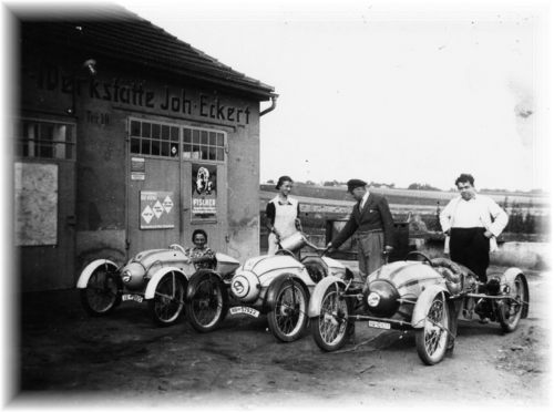 Karl Wolf mit seiner Kleinwagenherstellung (Colibri) 1938