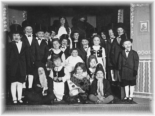 17.12.1933: Theaterspielen in Kindergarten vl:Scheidel Gerhard, Hart Anton, Strobel Lore, vr: ? Wagenbrenner Else, ? Hock Alfons