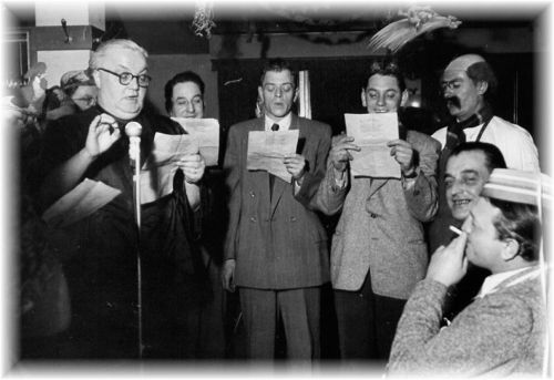 Liederkranz Kappenabend Februar 1952 - Motto: "Vögelabend" Das Quartett besingt "Die Knochenmühle" - Dr. Lässig, Chefarzt; Dr. Brandel, 1. Assistent