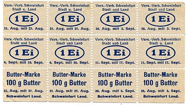 Lebensmittelmarken aus dem 1. Weltkrieg (vermutlich 1917)